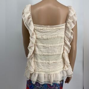 Anthropologie Eri+Ali Ruffle Lace Ivory Top Size M Approximately Measurement:Pit 13”/Shoulder to Hem 23” Pre-owned