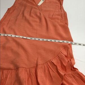 This beautiful Orange Dress Is Sleeveless With A Faux Wrap Design Ruffle Hem