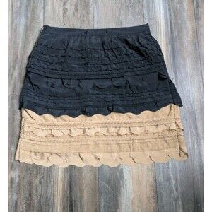 Anthropology MAUVE Scallop Heam Mini Skirt Size 6 Tan Black Tiered Layered