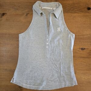 Antigua MLB New York Yankees Womens Sleeveless Polo Gray White Stripe Small
