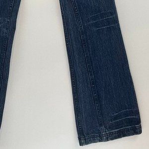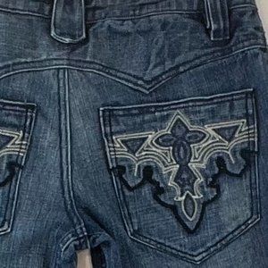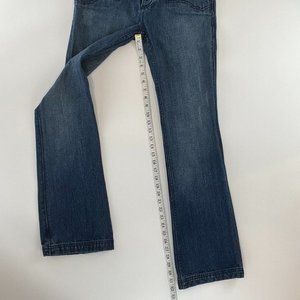 Antik Denim Flare Jean with Embroidered Back Pockets and Button Fly. Made in USA. 100% Cotton