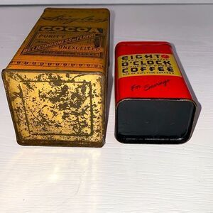 Antique Huylers Caracas Cocoa Tin And Vintage Small Eight O'Clock Coffee Tin