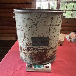 Antique "The Nymph" Large Decorative Sage Green 12" Metal Stock Pot with Handles and Affixed Lid