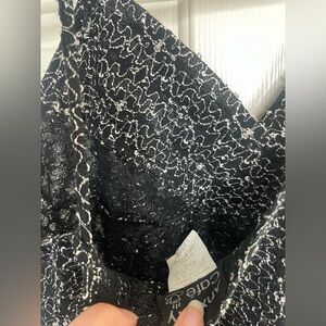 • Color & Pattern: Black base with white squiggly thread detailing throughout, creating an abstract or almost static-like effect