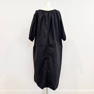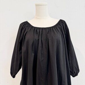 Apiece Apart Asymmetrical Hem Cotton Poplin Puff Sleeve Midi Dress Black 0 XS