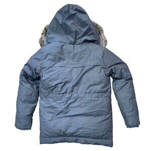 insulated coat, winter jacket, Designer, Appaman coat, faux fur trim, Sherpa lining, polyester coat, boys' outerwear, cold weather gear, grey coat, size 10 coat, winter wear, boys' fashion
