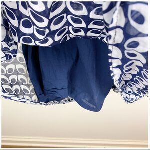 Aqua Women’s 3/4 Length Puffy Sleeve Silk/Cotton Blend Blue and White Batik Sheer Print Peasant Mini Dress w/Back Tie and Scoop Neck Sz S. Fully lined except for sleeves. Tie back. Please see photos for additional details. Pit to Pit 15“ Length 32“ Sleeve 16”