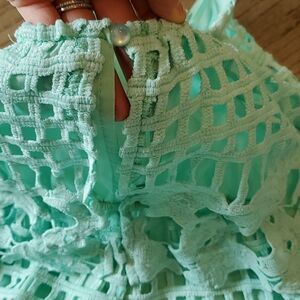 Mint green romper by Aqua XS. In great condition only has some loose thread in the back as seen in last pic it actually blends right in. Very cute on!