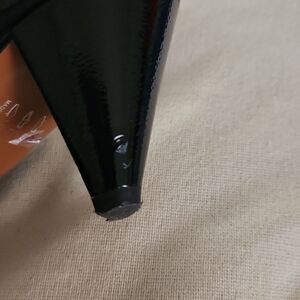 Black patent weatherproof leather ankle booties with inside zip closure. Pointed toe. In very good condition. Refer to photo for light wear on the heels.