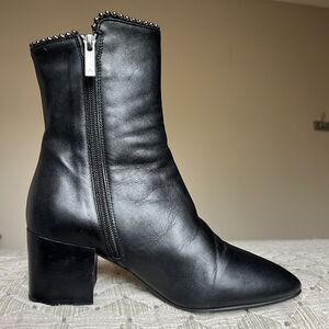 Aquatalia Black Leather Block Heel Studded Ankle Boot w/ Zip Size 7 ($550 New)