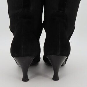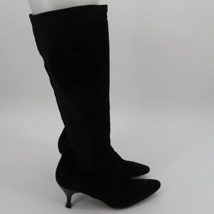 Aquatalia Women 8.5 Black Suede Knit Stretch Kitten Heel Boots Pointed Toe Zip