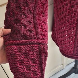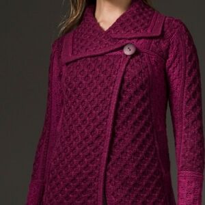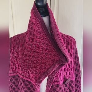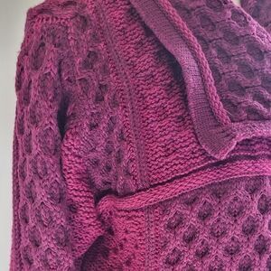 Aran Merino Wool Loose Knit Mid Length 2 Tone Sweater