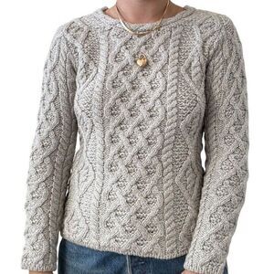 Aran Sweater Market Womens Light Gray Irish Fisherman Chunky 100% Wool Sweater S