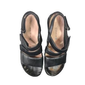 Aravon Megan Sandals Women’s 7B Comfort Adjustable Heeled Black Leather Strap.
