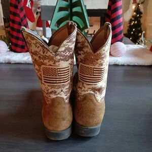Stylish western boots with a patriotic design. Features a unique flag pattern. Perfect for casual wear.