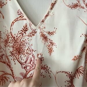 In good preowned condition other than some very faint discoloration that pretty much blends into the pattern. Comes with a detatchable lining. Cool monkey/jungle print.