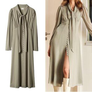 Aritzia Wilfred Mambo Dress Midi Victorian Button Down Tie US 8 Sage Green