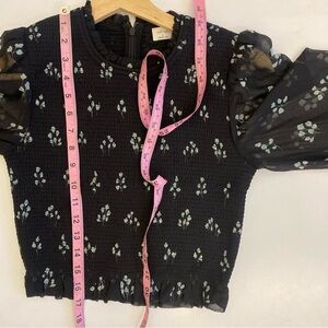 Aritzia || Wilfred Tempest Leaf Print Smocked Blouse Top Black Green Small