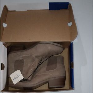 Elevate your shoe collection with these chic Arizona Jeans Co. Charlton booties in a beautiful dark taupe color. These ankle boots have a comfortable memory foam insole that molds to your feet for a perfect fit. They feature elastic inserts and a pull-on closure for easy on and off. The almond toe shape and 2-inch block heel give these booties a classic yet modern look.