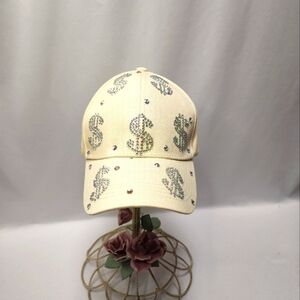 Aroura Borealis Rhinestone Dollar Sign Beige Baseball Cap