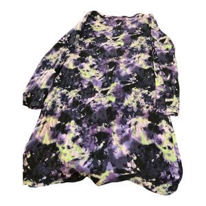 Stylish tie-dye dress with vibrant purple and black hues. Perfect for casual outings.