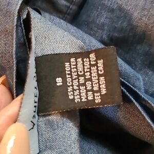 Ashley Stewart Blue Chambray V-neck Bow Tie Button-up Peplum Blouse Top Wmns 18