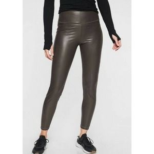 Athleta Faux Leather All Over Gleam Olive Gray Leggings Women's Size XXS EUC.