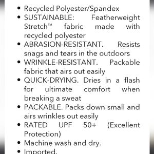 snags and tears in the outdoors • WRINKLE-RESISTANT. Packable