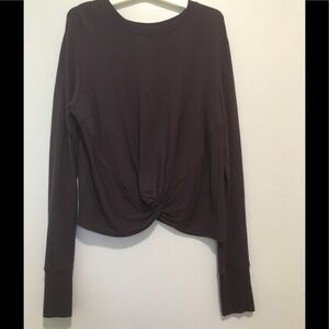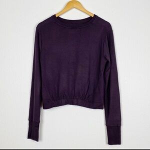 Athleta Twist Front Coaster Cropped Sweatshirt in excellent condition worn twice, Crew neck Long sleeve Twist front Good condition Soft and comfortable Plum color, no trades