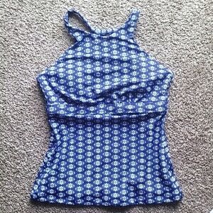 Athleta blue pattern halter top lined tankini top swim size 34D/DD