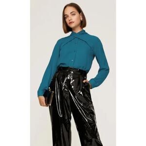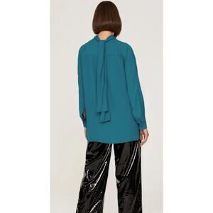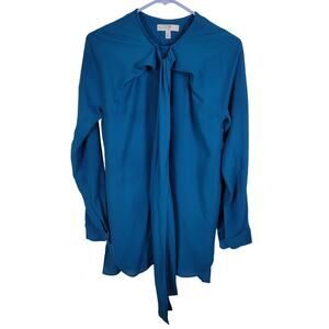 Atlein womens blue tie back long sleeved button up flowy blouse size 4