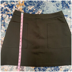 Dark Hunter Green mini skater skirt with two front pockets and hidden back zipper. This is a ponte material and very stretchy! The two front pockets are very 70’s inspired.