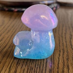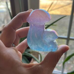 Crafted with intricate detail, this crystal specimen is a stunning display of nature's beauty. Its aura coating adds an extra layer of uniqueness and charm. Perfect for meditation or simply as a decorative piece, this crystal mushroom carving is sure to be a conversation starter.