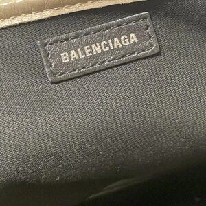 Auth BALENCIAGA Navy Cabas S 339933 Beige Leather - Tote Bag