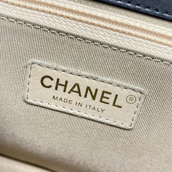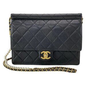 Auth CHANEL Matelasse AS0583 Black Lambskin Shoulder Bag Gold hardware