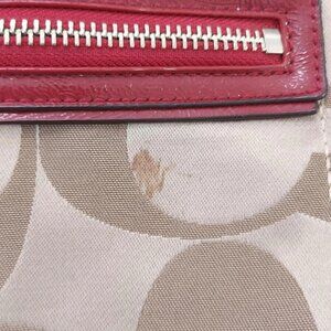 Auth COACH Daisy Poppy Signature Hobo F20064 Khaki Red Jacquard Patent Leather