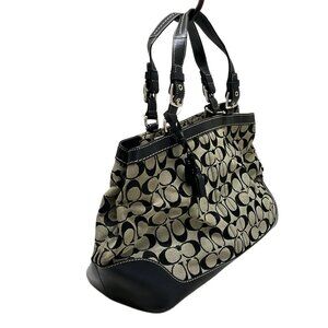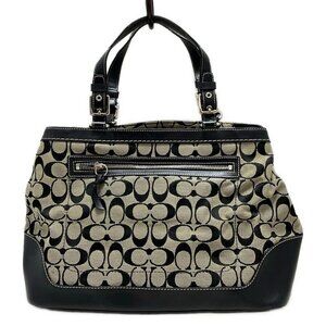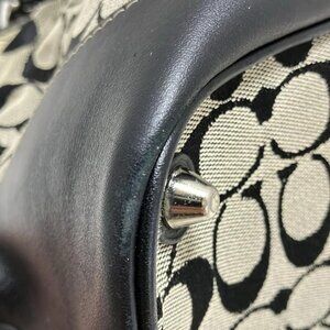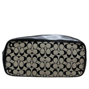 Auth COACH Signature Carryall Tote 7052 Cream Black Jacquard Leather - Tote Bag