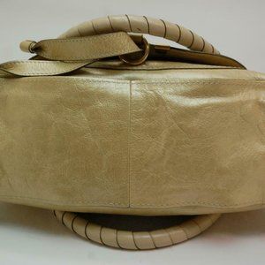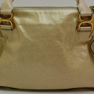 Auth Chloe Marcie Medium Shoulder Bag Leather Peal Gold