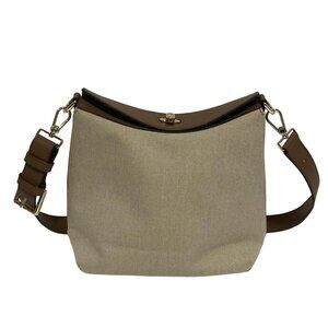 Auth FURLA - Beige Dark Brown Canvas Leather Shoulder Bag