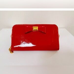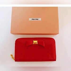 Auth Miu Miu Patent Leather EUC wallet x b/w orange & red w/ gold hardware