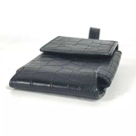 Auth SAINT LAURENT PARIS logo Cigarette case pouch Cigarette case Leather Black