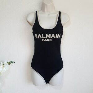 Authentic Balmain Paris Logo Linen Blend Knit Bodysuit