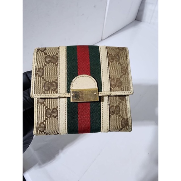 Authentic GUCCI GG Guccissima Sherry Line Biford Compact Wallet Cream/Beige