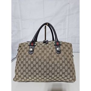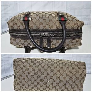 Authentic GUCCI MONOGRAM CANVAS MATCH BALL WEB BOSTON BAG