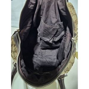 This authentic GUCCI MONOGRAM CANVAS MATCH BALL WEB BOSTON BEIGE/BROWN BAG is in it’s good pre-owned condition. The exterior canvas is clean and beautiful. The interior is clean. The handles are clean. Silver hardware.