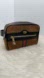 Elegant Gucci crossbody bag in brown suede with black leather accents. Features a front zip pocket and signature stripe detail.