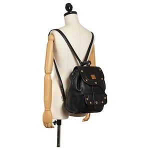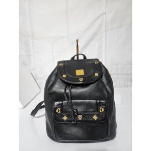 Authentic MCM Vintage Leather Drawstring Backpack Black