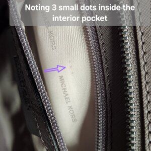 Notable Flaws: 3 small dots in the inside interior pocket, minor mark on the floor of the interior of purse (see pics)