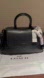 Sleek black leather satchel by Coach. Features elegant gold hardware. Perfect for stylish outings.