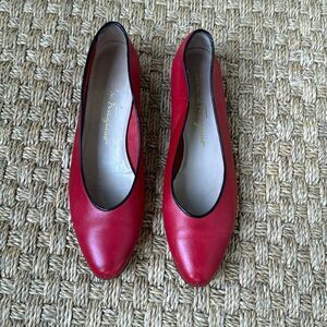 Authentic Red Leather Ballet Flats By Salvatore Ferragamo